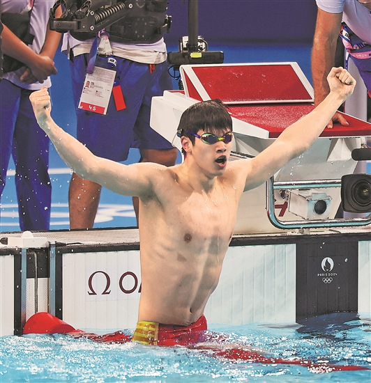 “wonderful ending”(精彩的結(jié)束),當(dāng)中國選手潘展樂奪得巴黎奧運(yùn)會男子100米自由泳冠軍后,坐在我旁邊的法國記者對我豎起了大拇指,這是7月31日晚游泳比賽的壓軸之戰(zhàn)。我對他說,這對中國游泳來說,其實(shí)是一個(gè)“wonderful beginning”(精彩的開始)。