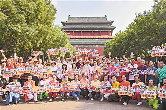 7月27日下午,眾多市民來到北京中軸線上的鐘鼓樓廣場參加北京中軸線申遺成功快閃慶?;顒?dòng)。本報(bào)記者 王偉偉 攝