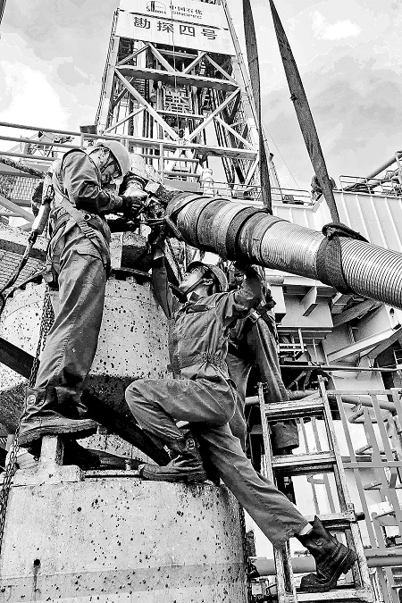 工人正在進(jìn)行鉆井作業(yè)。本報(bào)記者 陳丹丹 攝