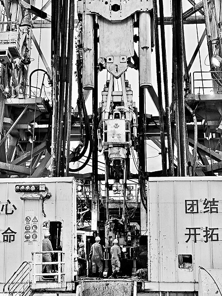 深夜時(shí)分,開(kāi)鉆指令下達(dá),被照得如同白晝一般的井口附近立即忙碌起來(lái)。