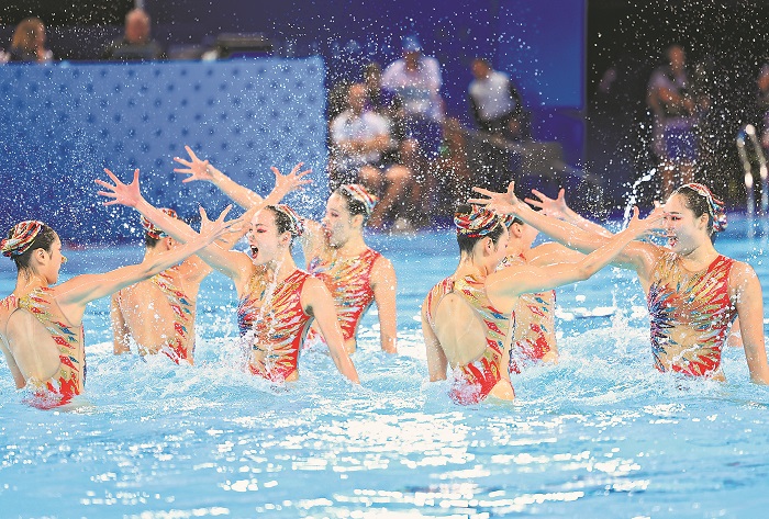 近幾年,中國花游的比賽節(jié)目無論從曲目選擇還是服裝造型都充滿著濃濃的中國風。巴黎奧運會集體項目第一項集體技術自選,中國隊的節(jié)目《速度與激情》中就融入了武術元素。本場比賽,隊員們用腿擺出了甲骨文的山字形,以展示中國文化,表達跨越艱難險阻、跨越山河的意境。這正是中國花游人堅持不懈、永不服輸精神的生動體現。(本報巴黎8月8日電)