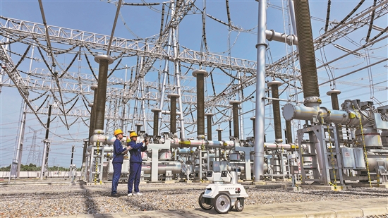 8月9日,在安徽省滁州市南譙區(qū),電力工人在500千伏同樂變電站進行智能巡視檢查。