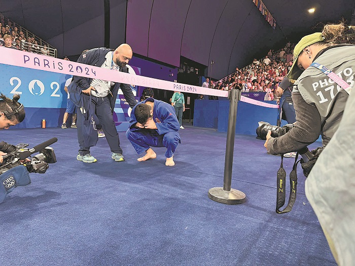 8月2日,在柔道男子100公斤級(jí)決賽中,格魯吉亞選手伊利亞不敵對(duì)手,獲得銀牌。賽后他蹲在地上掩面而泣。