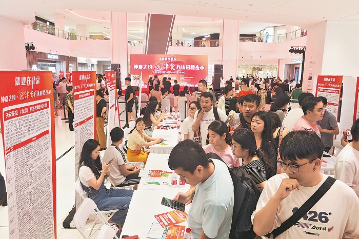 8月10日下午4時,一場招聘“夜市”在北京市五棵松萬達廣場開啟,前來了解情況的人絡繹不絕。