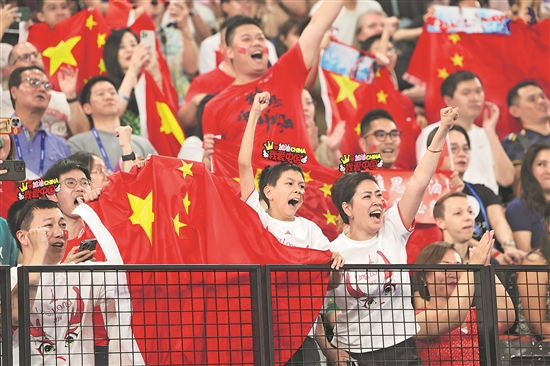 圖為現(xiàn)場觀眾為中國隊助威。本報特派記者 楊登峰 攝