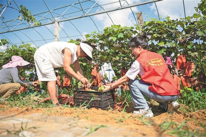 圖為當地組織選調生幫助農戶采摘葡萄。陸偉 王婧 攝