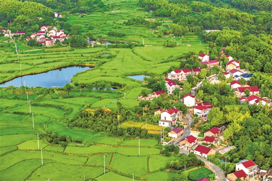 8月15日,安徽省蕪湖市繁昌區(qū)孫村鎮(zhèn)八分村,錯落有致的民居和山巒、田園、道路等相映成景,構(gòu)成一幅美麗的田園生態(tài)畫卷。近年來,繁昌區(qū)結(jié)合美麗鄉(xiāng)村建設(shè),推進村容村貌整治,優(yōu)化鄉(xiāng)村生態(tài)環(huán)境,打造生態(tài)宜居的和美鄉(xiāng)村。肖本祥 攝/視覺中國