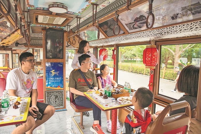8月17日,大美中軸線觀光巴士在北京中軸線開通。該線路巴士均采用新型仿古鐺鐺車,游客可全面游覽15處古都之脊的文化遺產(chǎn),體驗(yàn)壯美有序、古今交融的城市畫卷。當(dāng)日,北京旅游集散中心共優(yōu)化開通了8條以大美中軸、潮朝陽(yáng)等為主題的觀光巴士線路,旨在提供全新的旅游觀光體驗(yàn),為北京文旅市場(chǎng)注入新活力。
