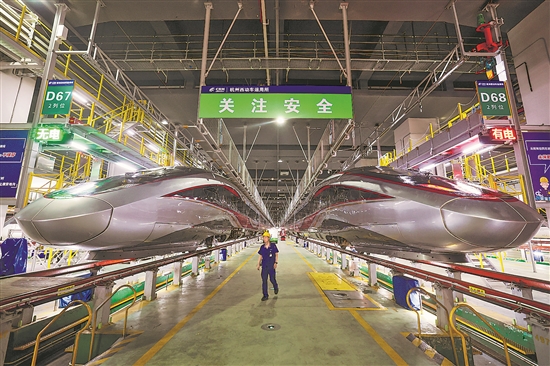 8月21日,杭溫高鐵試運(yùn)行列車(chē)停在杭州西動(dòng)車(chē)運(yùn)用所內(nèi)進(jìn)行檢修作業(yè)。目前,新建杭州至溫州高速鐵路處于開(kāi)通試運(yùn)行階段,多趟試運(yùn)行高鐵列車(chē)每日奔馳在杭溫高鐵上,對(duì)線路進(jìn)行全面“實(shí)戰(zhàn)”檢測(cè)。