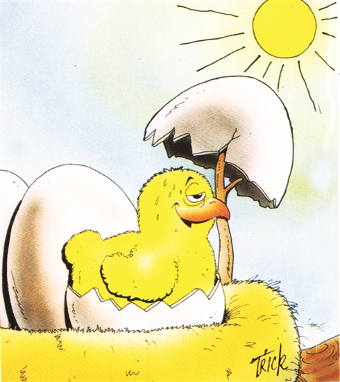 今天有點(diǎn)熱,剛孵出的雞寶寶頭頂烈日實(shí)在難受,它就地取材用蛋殼支起“遮陽(yáng)傘”,聊勝于無(wú)的小發(fā)明解決問(wèn)題就好。