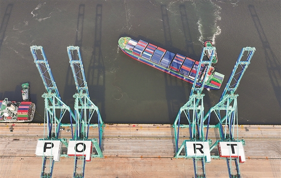 8月24日,“康琦嘉鴻”輪從天津港第二集裝箱碼頭離泊。