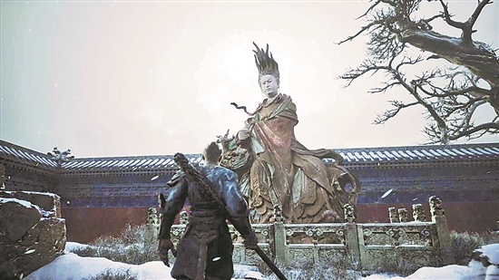 游戲中“既見未來,為何不拜”的名場(chǎng)面實(shí)景是來自山西隰縣小西天。這是一座“小、巧、精、奇”的佛教寺廟,不足170平方米的大雄寶殿里,1978尊精美的彩色懸塑佛像姿態(tài)萬千、生動(dòng)傳神,襯托以層層疊疊的天宮樓閣,呈現(xiàn)出仙宮佛國(guó)的迷人景象。有網(wǎng)友總結(jié)說:“‘悟空’的勝利,是審美的勝利。”