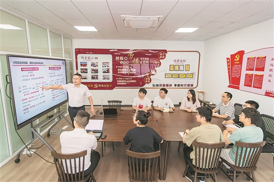 8月23日,在中國電信金華分公司勞模工作室內(nèi),浙江省勞動(dòng)模范、首席技術(shù)官王志剛和青年員工交流,傳授技藝。