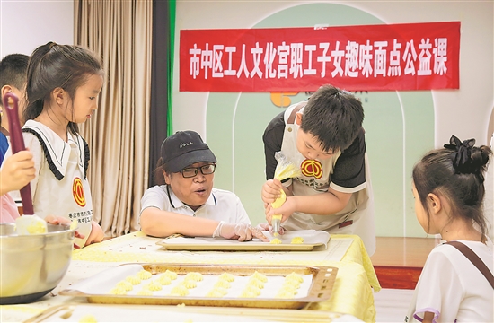 近日,山東省棗莊市市中區(qū)工人文化宮舉行“職工子女趣味面點公益課堂”活動,邀請職工及子女體驗傳統(tǒng)面點制作的樂趣。
