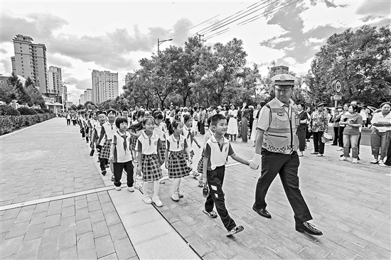 8月26日,甘肅省平?jīng)鍪嗅轻紖^(qū)迎來2024年秋季開學(xué)。為保障轄區(qū)各學(xué)校有序開學(xué),維護(hù)學(xué)校周邊社會(huì)治安平穩(wěn)有序,平?jīng)鍪泄簿轴轻挤志纸谎簿箨?duì)及轄區(qū)派出所民輔警深入中小學(xué)、幼兒園周邊重點(diǎn)路段,開啟常態(tài)化護(hù)學(xué)模式,全力以赴站好“護(hù)學(xué)崗”,守護(hù)開學(xué)季。本報(bào)通訊員 鄭兵 攝