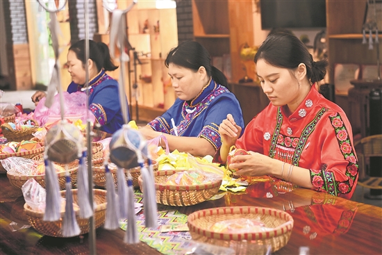 近年來(lái),廣西靖西市生產(chǎn)的繡球作為饋贈(zèng)賓朋的精美禮品和旅游紀(jì)念品,銷(xiāo)往全國(guó)各地,并通過(guò)電商平臺(tái)出口到東南亞等地,成為助推當(dāng)?shù)芈糜挝幕l(fā)展和群眾增收致富的產(chǎn)業(yè)。