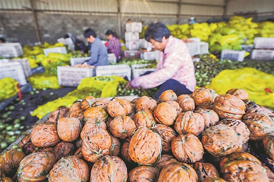 近年來,河北省遵化市的核桃種植銷售專業(yè)合作社適應(yīng)市場需要,積極開展鮮核桃收購、加工、外銷工作,減少了晾曬儲存費(fèi)用,增加了農(nóng)民收入。新華社發(fā) (劉滿倉 攝)
