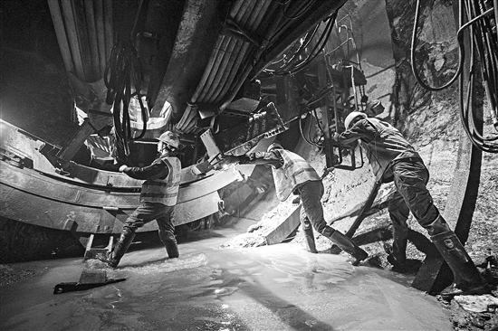 8月25日,位于新疆維吾爾自治區(qū)巴音郭楞蒙古自治州的天山勝利隧道施工現(xiàn)場(chǎng),中國(guó)交建新疆烏尉公路項(xiàng)目部工人正蹚水進(jìn)入隧道,對(duì)掘進(jìn)機(jī)進(jìn)行檢修。天山勝利隧道穿越天山山脈,全長(zhǎng)22.13公里,建設(shè)工期6年,施工難度大,建成后將成為世界上最長(zhǎng)的高速公路隧道。本報(bào)記者 王偉偉 攝