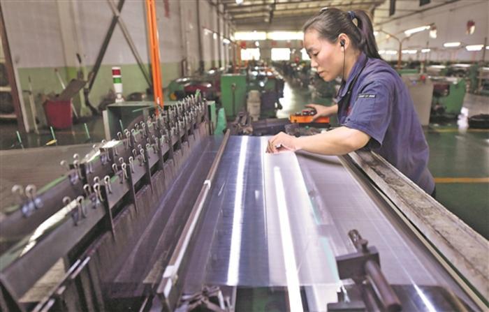 8月30日,河北省安平縣一家絲網(wǎng)企業(yè)的工人在生產(chǎn)線上工作。