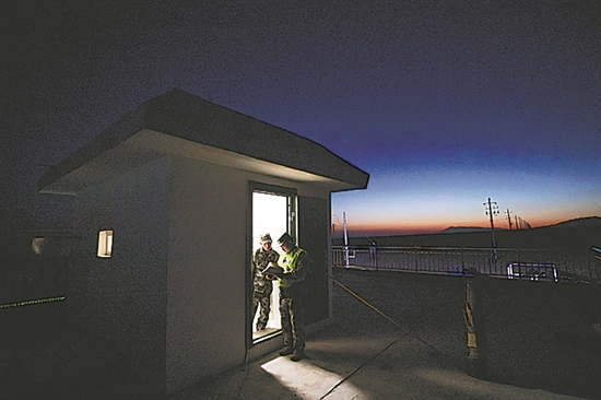 8月28日晚,兩名護(hù)邊員正在交流工作。