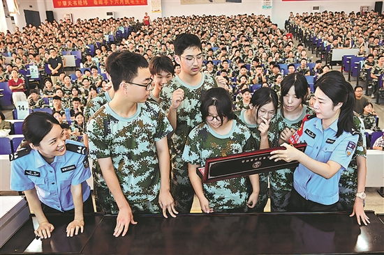 8月26日,在安徽省和縣第一中學(xué)報(bào)告廳,民警為1000多名高一新生講解毒品的危害。本報(bào)通訊員 秦祖泉 攝