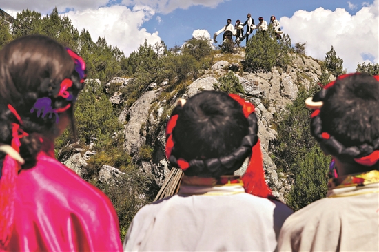 8月20日,青海省玉樹藏族自治州囊謙縣,當(dāng)?shù)孛癖娸d歌載舞歡迎游客的到來。本報記者 蔚可任 攝