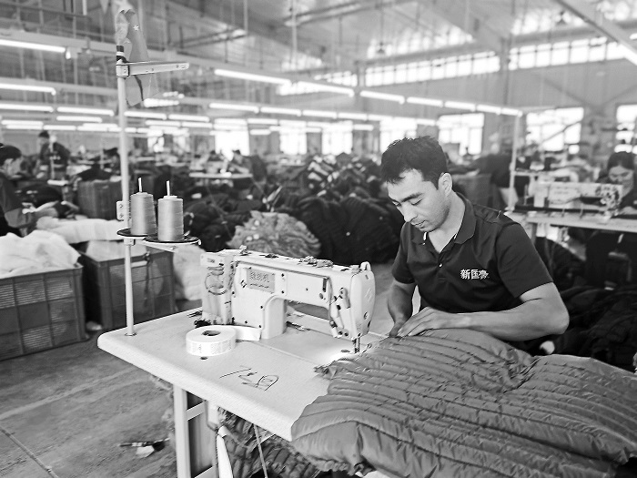 8月28日,新疆葉城縣新國(guó)豪制衣有限責(zé)任公司員工正在車間制衣。葉城縣阿克塔什鎮(zhèn)是新疆最大的異地扶貧搬遷安置區(qū)。當(dāng)?shù)匕凑铡耙斯t工”的原則,引進(jìn)8家勞動(dòng)密集型企業(yè)入駐,形成以紡織服裝、日化等為主的產(chǎn)業(yè)園區(qū),吸納800余人穩(wěn)定就業(yè),讓大山里的農(nóng)牧民變身產(chǎn)業(yè)工人,實(shí)現(xiàn)家門口“有事做、有錢賺、有奔頭”。本報(bào)記者 吳鐸思 攝