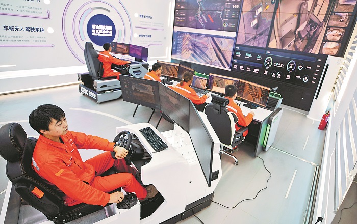 8月21日,新疆維吾爾自治區(qū)昌吉回族自治州,一家能源企業(yè)的工作人員正通過智能化管控平臺組織生產(chǎn)。通過該平臺,企業(yè)在生產(chǎn)過程中可實現(xiàn)地理信息自動采集、智能三維設(shè)計、遠程操控裝車、無人運輸?shù)热^程的智能化作業(yè)。