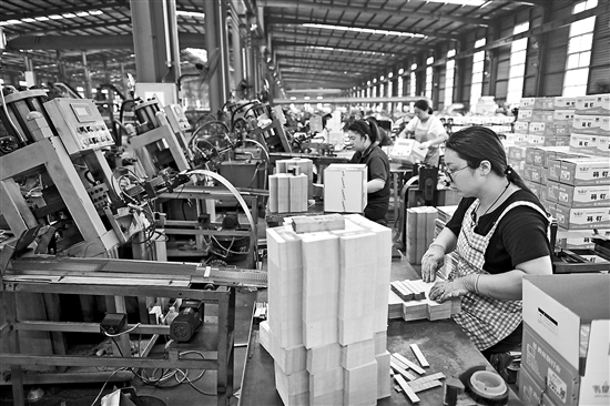 9月4日,河北隆堯青龍劍釘業(yè)有限公司工人在包裝鋼排釘。