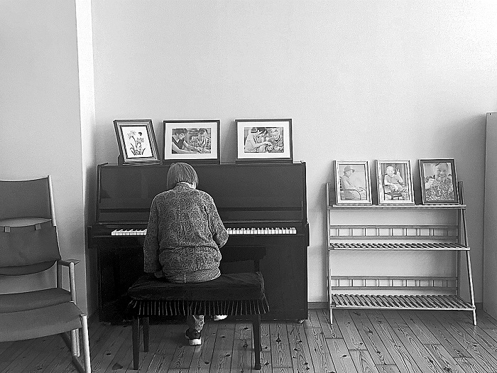 一位阿爾茨海默癥老人正在彈鋼琴。本報(bào)記者 曹玥 攝