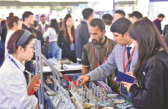 10月10日,采購商在采購大會上挑選緊固件產(chǎn)品。