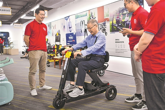 10月12日,一名老人在體驗折疊電動代步車。據(jù)了解,為滿足老年人居家適老化改造需求,提升老年人居家生活環(huán)境和品質,深圳將由民政局統(tǒng)籌,利用超長期特別國債資金支持,資助深圳戶籍60歲及以上、有需求及困難的老年人購買智慧化、智能化的適老產(chǎn)品。 新華社記者 梁旭 攝