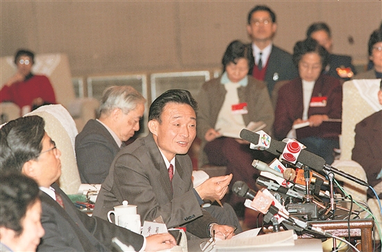 1994年3月,時(shí)任上海市委書記的吳邦國同志在全國兩會(huì)上海代表團(tuán)全團(tuán)會(huì)議上。新華社記者 劉建國 攝