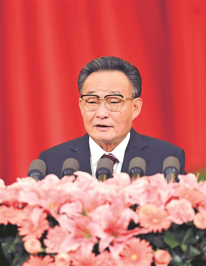 二〇一一年三月十日,十一屆全國人大四次會(huì)議在北京人民大會(huì)堂舉行第二次全體會(huì)議。吳邦國同志作全國人民代表大會(huì)常務(wù)委員會(huì)工作報(bào)告。新華社記者 謝環(huán)馳 攝