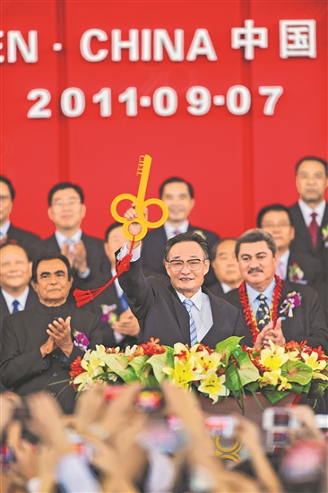 二〇一一年九月七日,吳邦國同志在福建廈門出席第十五屆中國國際投資貿(mào)易洽談會(huì)開館式。新華社記者 張國俊 攝