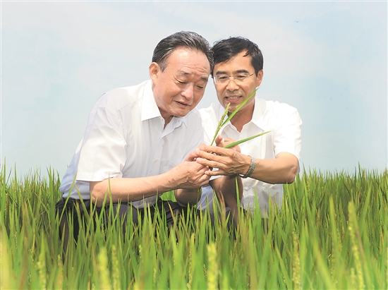 二〇一二年七月十九日,吳邦國同志在黑龍江農(nóng)墾建三江管理局二道河農(nóng)場萬畝大地號察看水稻長勢。新華社記者 謝環(huán)馳 攝