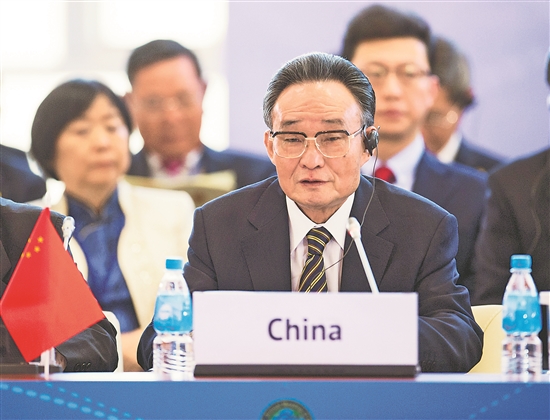 2013年1月28日,吳邦國同志在俄羅斯符拉迪沃斯托克出席亞太議會(huì)論壇第21屆年會(huì),并作題為《堅(jiān)持和平發(fā)展 促進(jìn)合作共贏》的主旨發(fā)言。新華社記者 王曄 攝