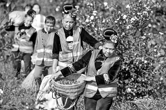 10月15日,貴州省黔南布依族苗族自治州龍里縣頤光山林油茶生態(tài)園迎來收獲季,村民忙著采收、搬運(yùn)、晾曬。近年來,該生態(tài)園流轉(zhuǎn)3000余畝荒山發(fā)展生態(tài)油茶種植,吸納當(dāng)?shù)卮迕駝?wù)工,助村民致富增收,促進(jìn)鄉(xiāng)村振興。新華社記者 楊文斌 攝