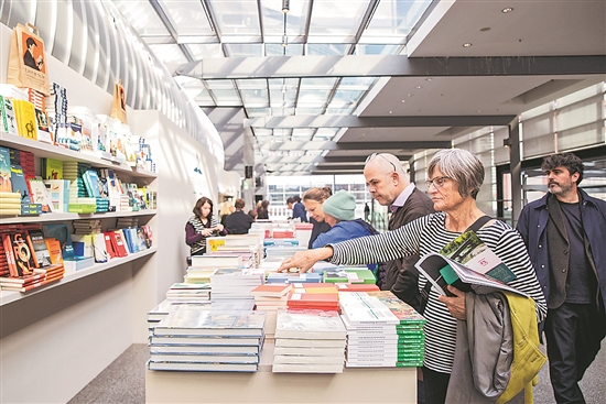 圖為當?shù)貢r間10月16日,人們在德國法蘭克福書展的主賓國——意大利展區(qū)參觀。新華社記者 張帆 攝