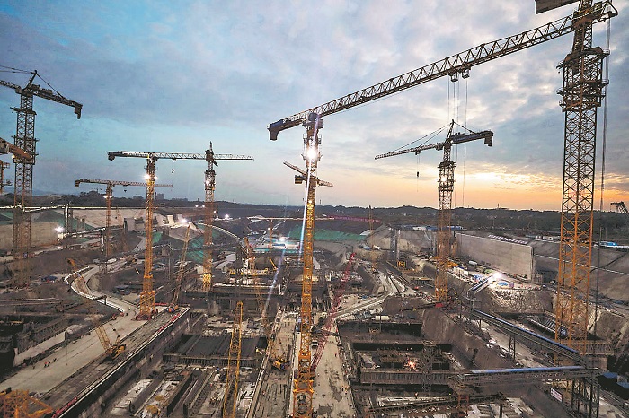 由于西津庫區(qū)水面與海平面之間存在65米左右落差,平陸運河項目建設(shè)了三個梯級航運樞紐以克服水位落差,分別是馬道樞紐、企石樞紐、青年樞紐,其中馬道樞紐和企石樞紐將建成世界最大的內(nèi)河省水船閘。目前,三大樞紐建設(shè)正處于主體工程建設(shè)攻堅期。