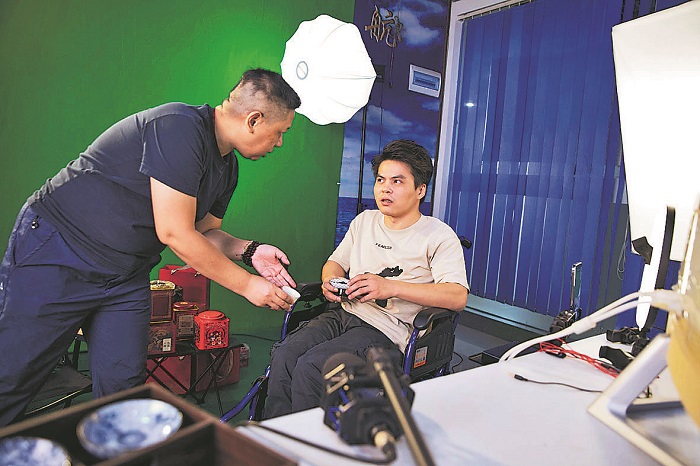 黎志新的設(shè)想其實(shí)正在悄然變?yōu)楝F(xiàn)實(shí)。10月16日,在梧州市殘疾人輔助性就業(yè)基地的模擬直播間,基地負(fù)責(zé)人陳詠加正在教一名殘疾人如何進(jìn)行直播帶貨。與其他直播間不同,陳詠加往往會從六堡茶的歷史文化方面入手,讓殘友在提升技能的同時(shí)也能提升內(nèi)在修養(yǎng)。