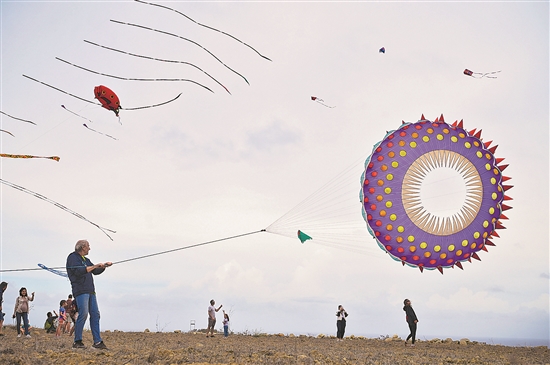 當(dāng)?shù)貢r間10月19日,在馬耳他戈佐島阿爾卜,人們在第7屆戈佐國際風(fēng)箏節(jié)上放風(fēng)箏。
