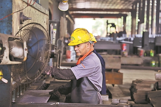 10月中旬,在貴州一鋼材公司,技術人才正在打磨拋光H型鋼材料。