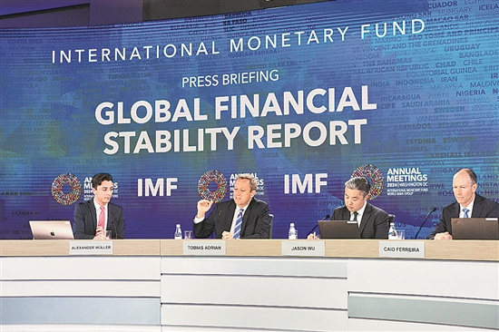 圖為國(guó)際貨幣基金組織(IMF)在美國(guó)華盛頓舉行《全球金融穩(wěn)定報(bào)告》媒體發(fā)布會(huì)。