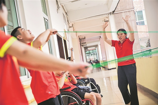 近年來,玉林市各級殘聯(lián)與教育部門探索殘障孩子康復新路徑,通過設置多樣化的教學模式,開展“醫(yī)教結合”“陽光體育康復活動”等,幫助學生克服身心障礙,融入社會。