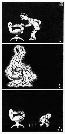 再后來,劉局的膽子也變大了,他做了一些當(dāng)初“大劉”想都不敢想的事情??梢韵胂蟮氖牵瑒⒕蛛x開了那把提升自己膽量的座椅。就在劉局屁股離開座位那一瞬間,他的身段以迅雷不及掩耳之勢(shì)降了下來,這又是誰(shuí)?偉岸高大的劉局,被低矮到幾近令人忽視的“老劉”取代?,F(xiàn)在再看劉某,身姿竟然連當(dāng)年的大劉都不及了。此刻的心情,心理脆弱一些的旁觀者都不忍心描述。