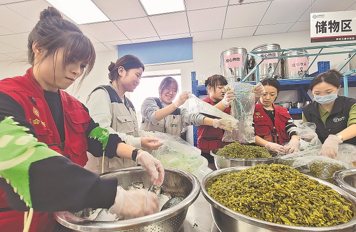 為了讓這些職工安心工作,順豐速運西安順路物流有限公司工會每天組織工會代表、行政人員等10人,組成“臨時愛心美食隊”,為一線職工做熱飯、熱飲,免費加餐。當(dāng)天,順豐工會愛心廚房準(zhǔn)備了40斤豆腐、200斤酸豆角、30斤魚及2000個饅頭,為一線職工做酸豆角肉沫、鯽魚豆腐湯等,讓所有在一線因為忙碌無法及時吃飯的白班、夜班職工,免費吃到熱乎乎的愛心餐。
