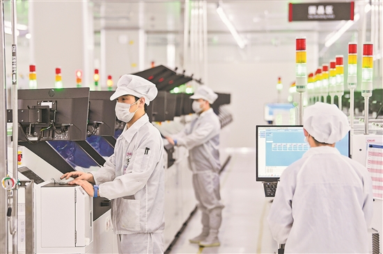 近日,在位于重慶市璧山區(qū)的重慶康佳光電科技有限公司,工作人員在MLED直顯生產(chǎn)車間作業(yè)。