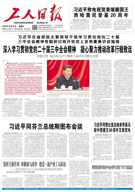 工人日?qǐng)?bào) 2024年10月30日 星期一