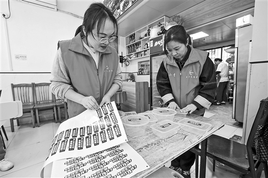 10月29日,在浙江省湖州市吳興區(qū)龍泉街道學(xué)士府社區(qū)的餐飲店,黨員志愿者在打包盒上張貼反詐騙貼紙,通過這種方式擴(kuò)大宣傳的范圍和效果。為提升公眾防范意識(shí)、構(gòu)建和諧社會(huì)環(huán)境,龍泉街道聯(lián)合龍泉派出所、司法所在各個(gè)社區(qū)對居民及商戶開展全民反詐禁毒系列宣傳活動(dòng),共筑基層反詐禁毒防線。新華社記者 徐昱 攝